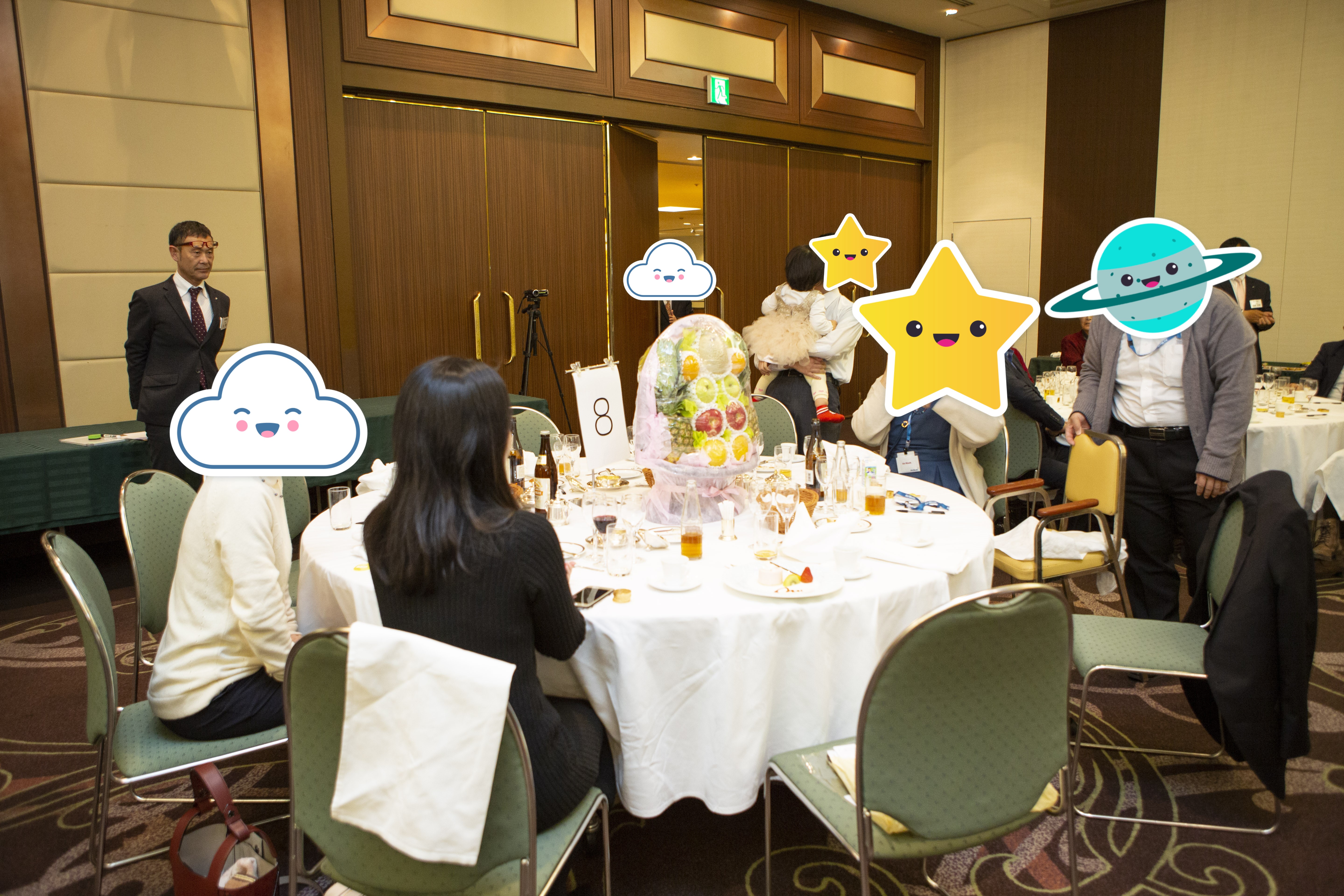 定番の『フルーツパーティ』ゲームのクイズでは各テーブル、非常に正解率が高く最後まで接戦でした。