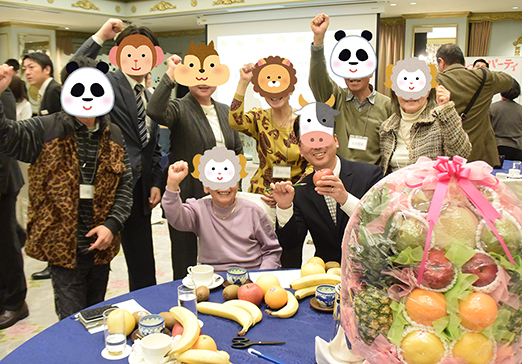 クイズ大会を楽しみ、みごと果物盛りをゲットしたチームは