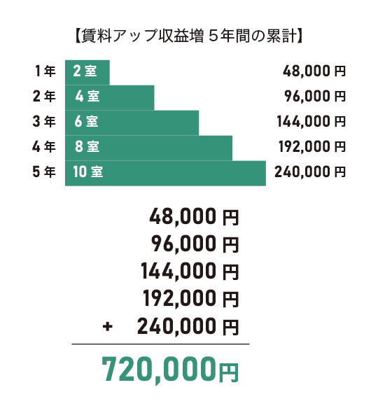 (126万円の損失を回避+賃料アップによる72万円の収益増)
